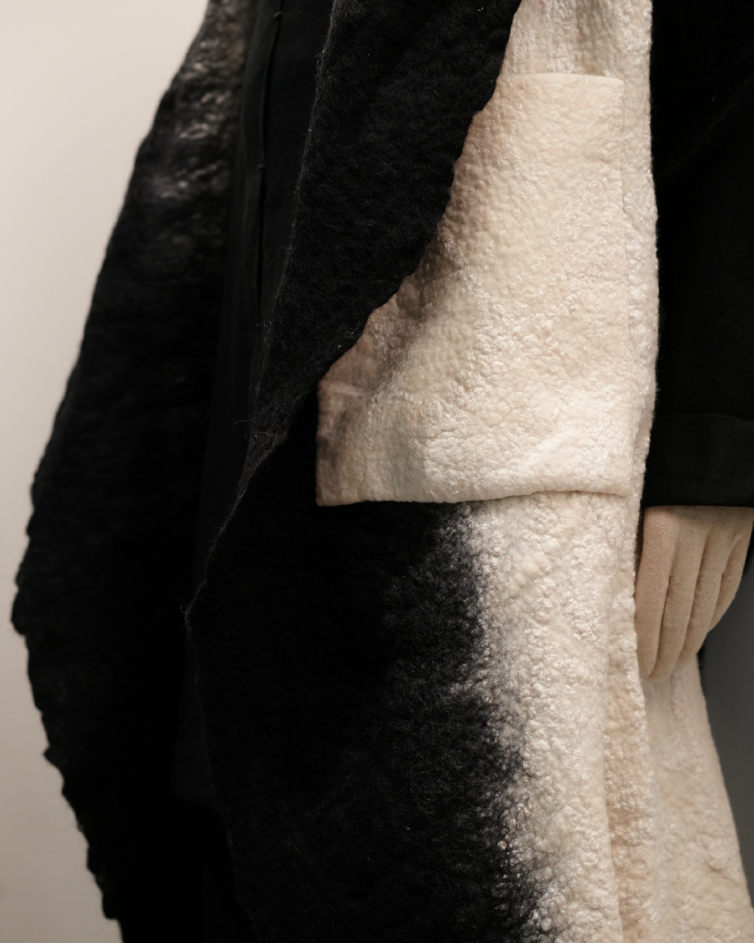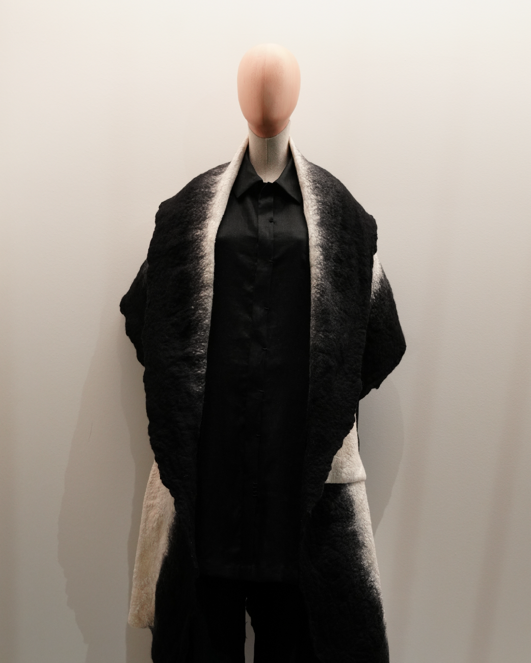 En M7, centro creativo de Msheireb Downtown, la exhibición presentó las propuestas seleccionadas en un montaje que destaca la diversidad de enfoques y la coherencia conceptual del conjunto. Las piezas de A New Cross se integraron a este paisaje expositivo como manifestaciones de un trabajo que combina técnicas tradicionales, investigación profunda de materiales y un compromiso constante con los oficios textiles latinoamericanos. En este entorno, la marca encontró un espacio donde sus procesos manuales y su atención a la estructura y la textura adquirieron una nueva dimensión.